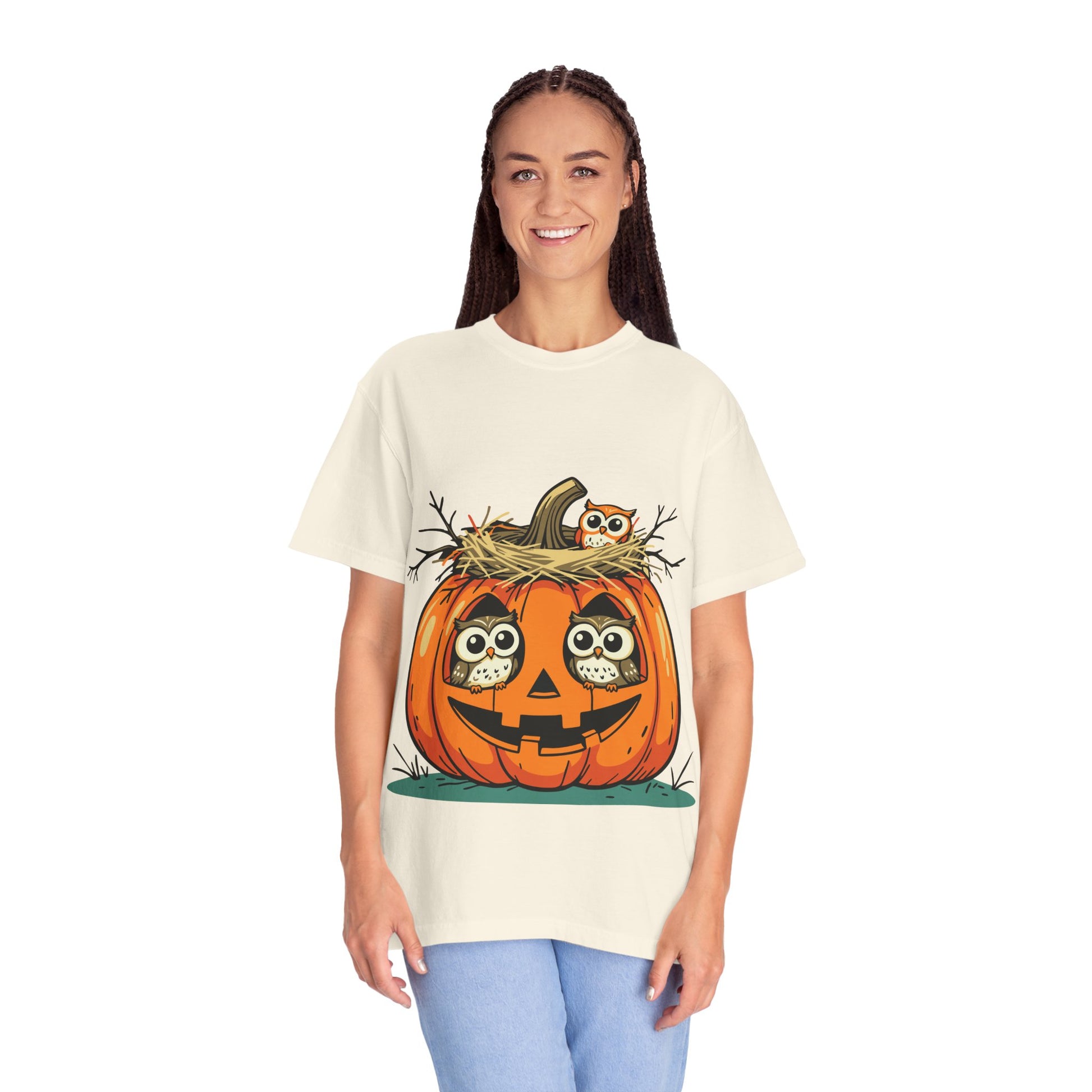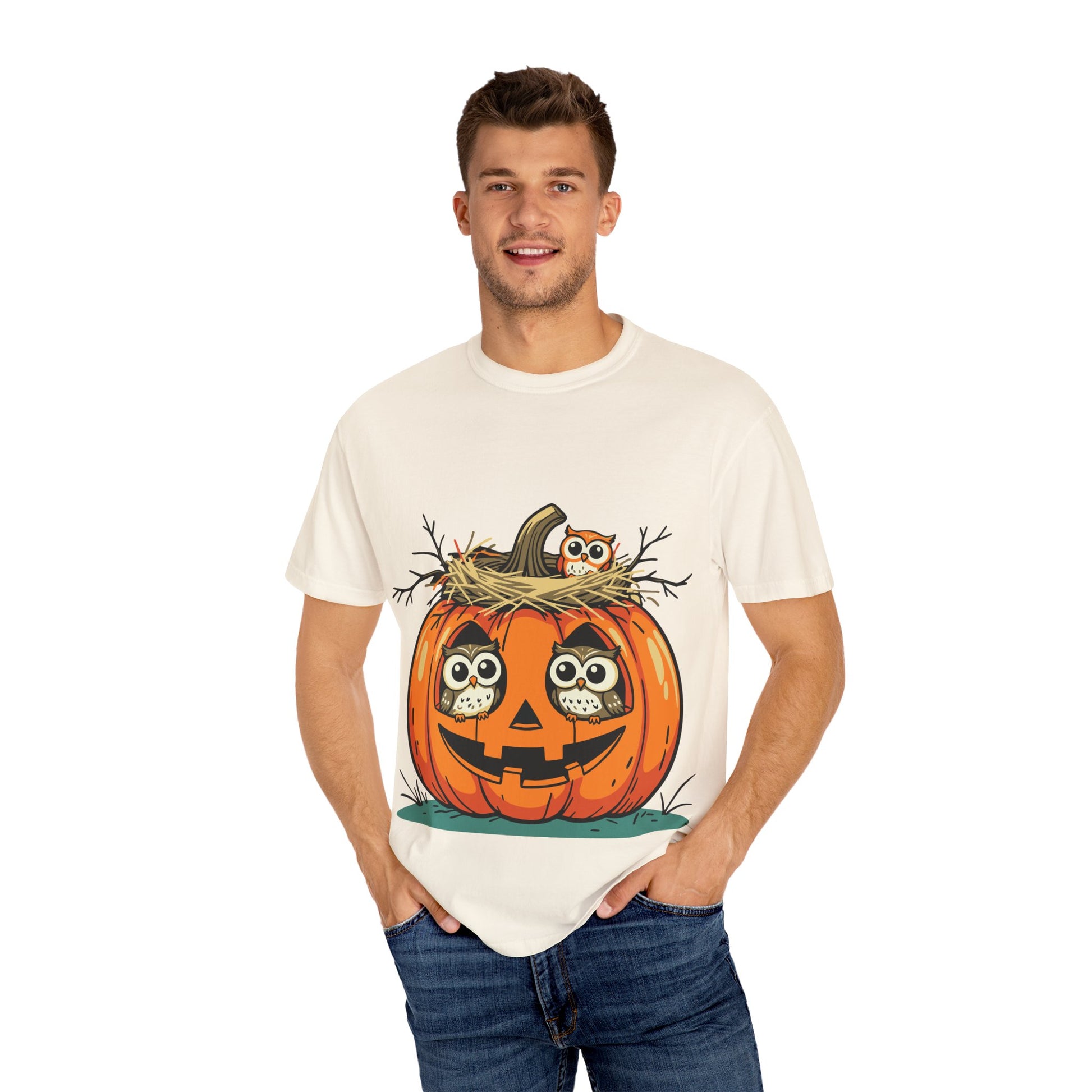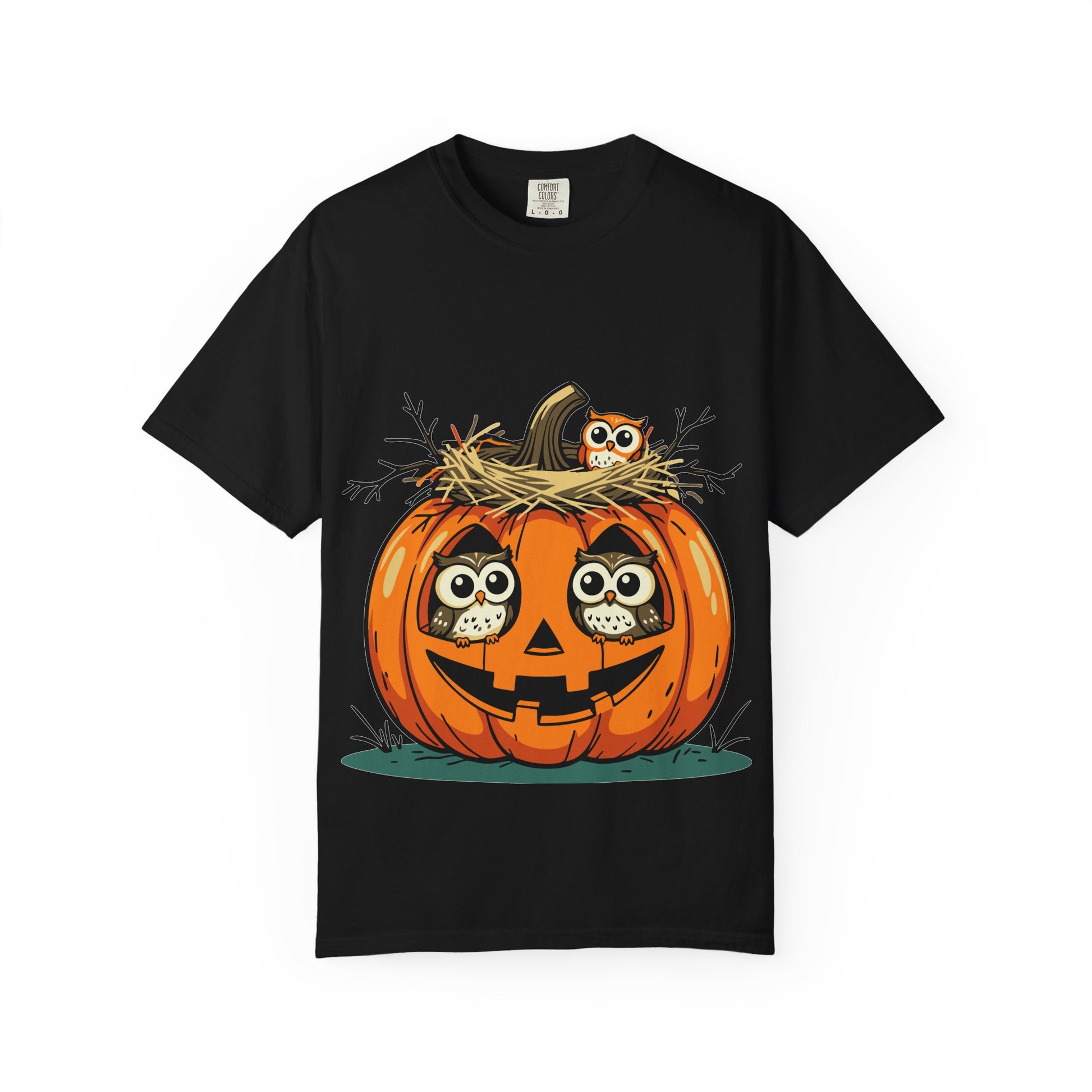 nest head Halloween Owl Pumpkin T-shirt, Unisex Fall Tee, Cute Autumn Shirt, Spooky Seasonal Apparel, Trick or Treat Outfit