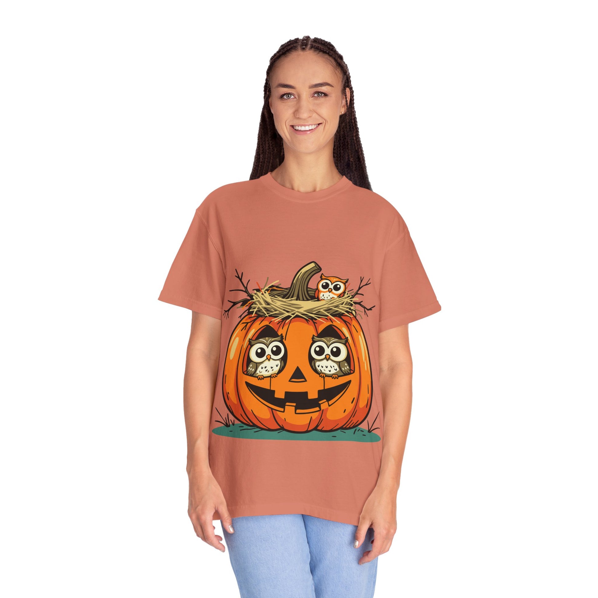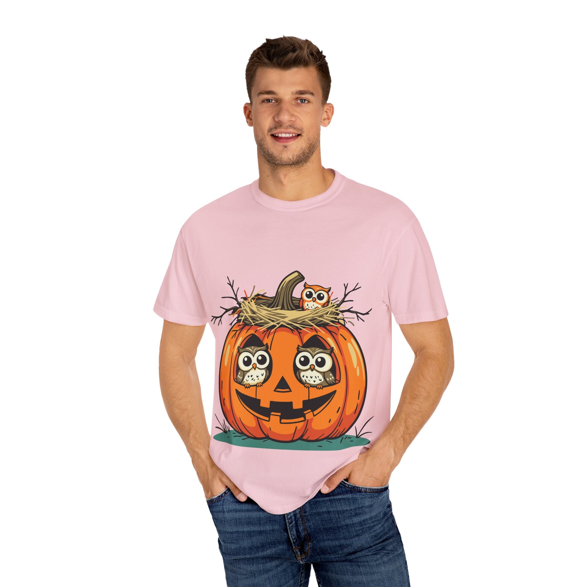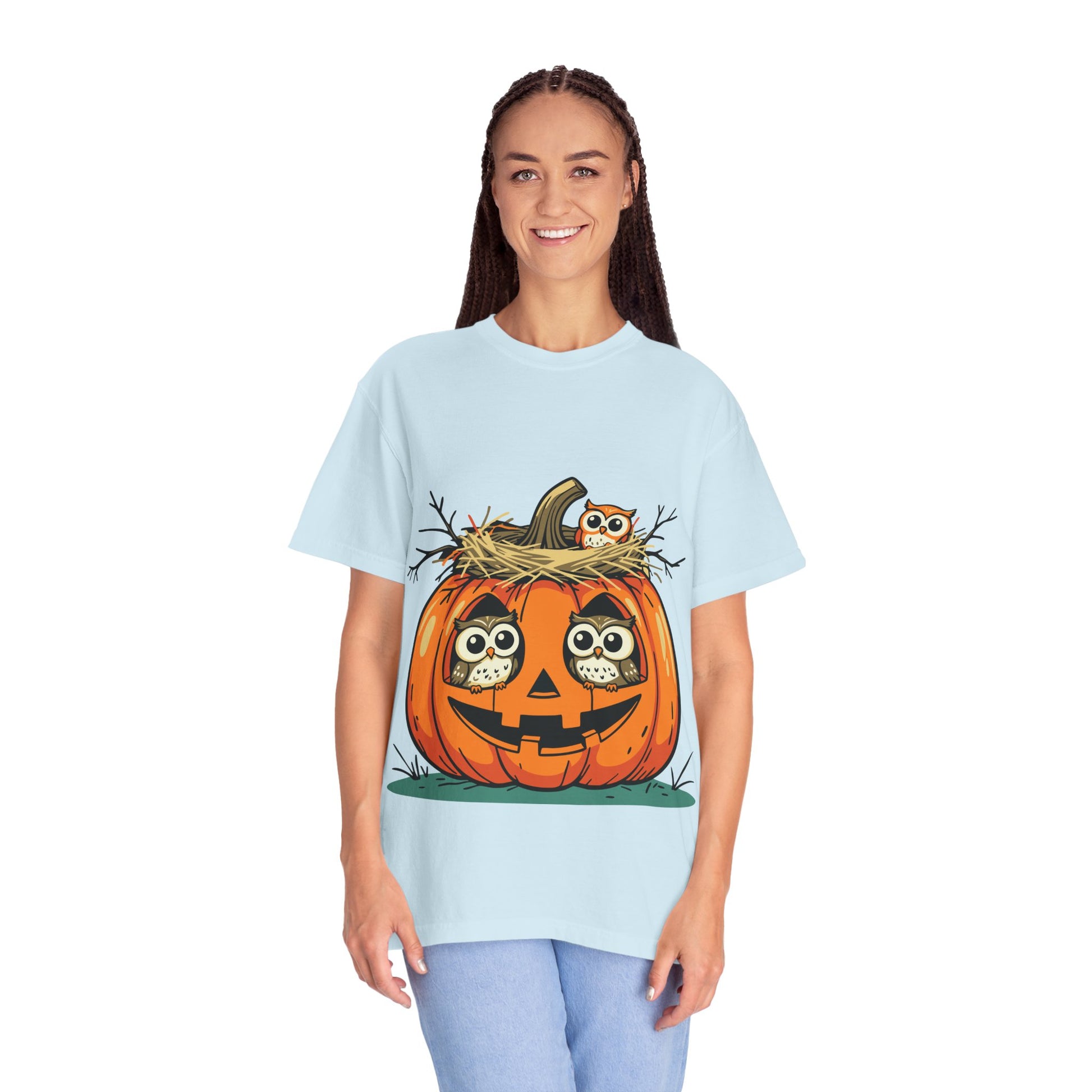 nest head Halloween Owl Pumpkin T-shirt, Unisex Fall Tee, Cute Autumn Shirt, Spooky Seasonal Apparel, Trick or Treat Outfit
